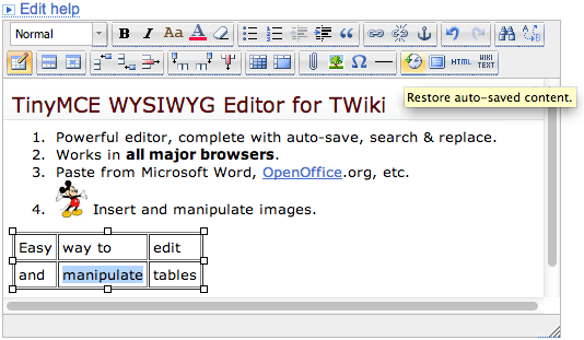 Note: Please contribute updates to this topic on TWiki.org at TWiki:TWiki.TinyMCEPlugin.